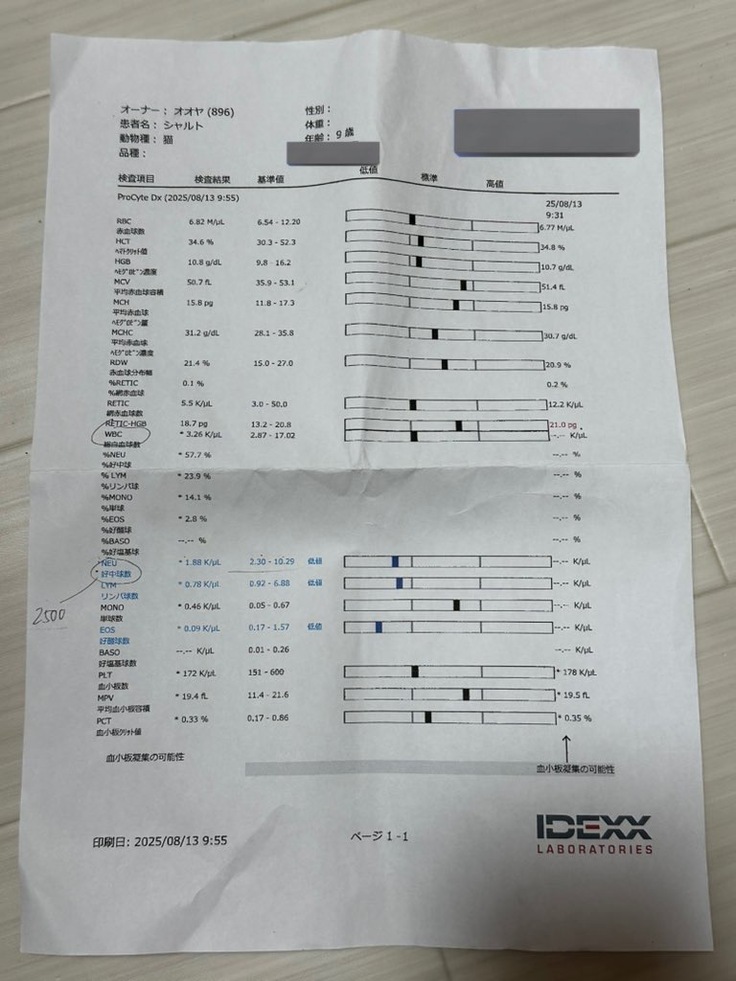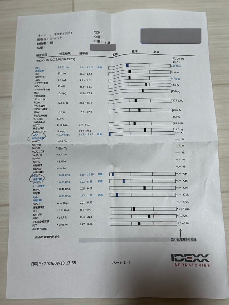 再度4回目の抗がん剤投与前血液検査を行いました。前回よりはリンパ球数は増えていたものの、基準値には達していなかったため、今回も先送りとなりました。