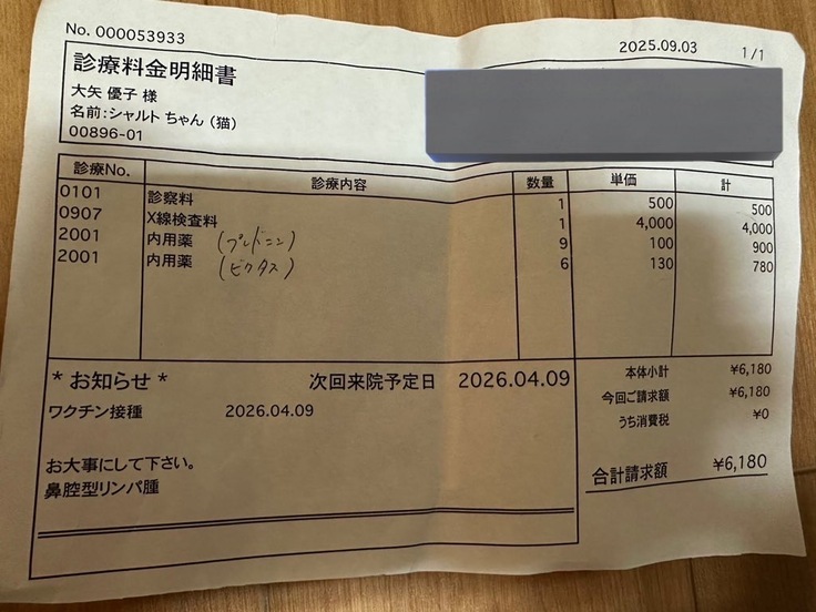 8/31に行った5回目の抗がん剤治療前から鼻水が続いていたのですが数日前から症状が悪化し、苦しそうな様子を見せるようになりました。また、匂いが分からないせいか、餌の食いつきも悪くなり心配になったので昨日再度病院を受診しました。
