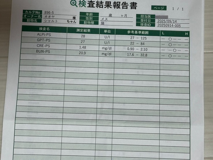 血液検査の結果です。