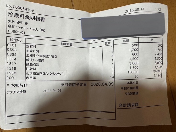 一昨日シャルトは7回目の抗がん剤治療を頑張りました。