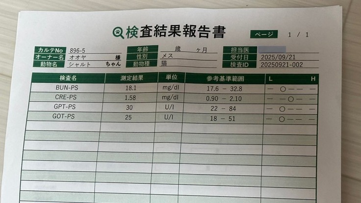 食欲はあり、大好きなカリカリを喉を鳴らしながら食べていました。
