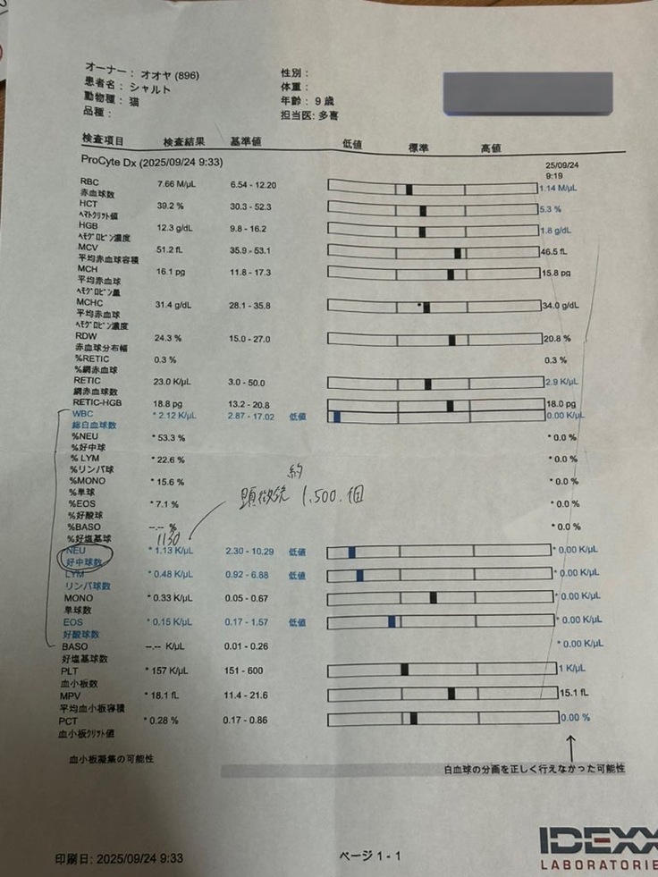 血液検査の結果、好中球数が800から1500まで回復していました!