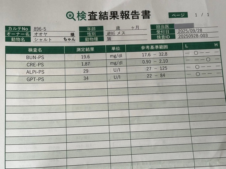 腎臓や肝臓の数値も問題なく、先生に丈夫だと言われました。