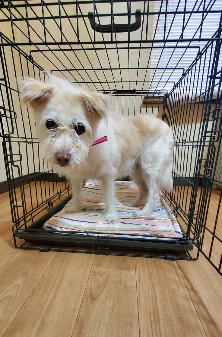 飼い主様が入院されて、やむを得ず空き家に一人ぼっちだった高齢犬になります。推定15歳。大変ビビりな性格で耳も遠く目も見えづらくなってきてはいますが、食欲旺盛で元気いっぱいな女の子です。長距離は歩けないけれど、楽しそうにピョンピョンしながら散歩してくれます♪
