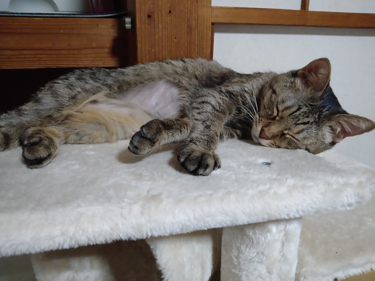 毛繕いもするようになり、キャットタワーの階段も登っていけるようになりました。