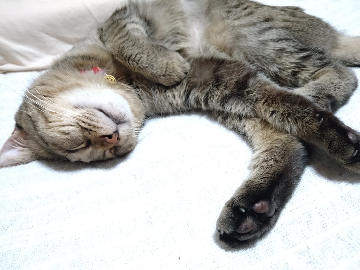 最近は体調が良いのか、リラックスして寝ている事が多くなりました。
