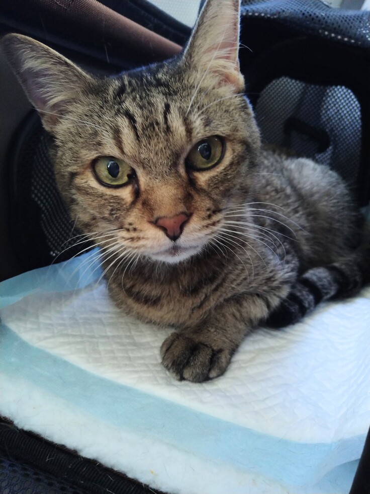 〈車内で診察順番待ちのかつおちゃん↑〉