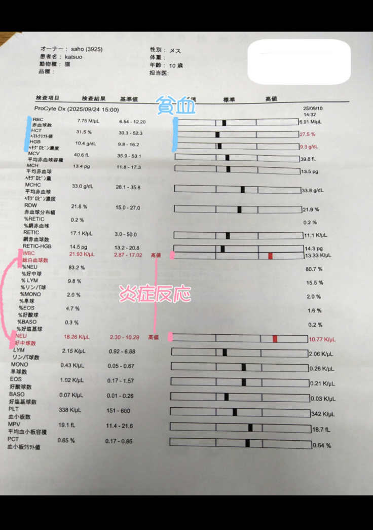 しかし、前回の炎症数値(SAA)は 3.75でしたが、今日はSAA 31と上がってしまっていました⋯(正常値は 3.75以下)