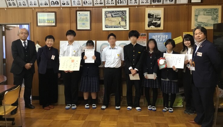 第16回団体賞受賞の大津市立堅田中学校。入賞2名、入選4名と優れた成績でした。