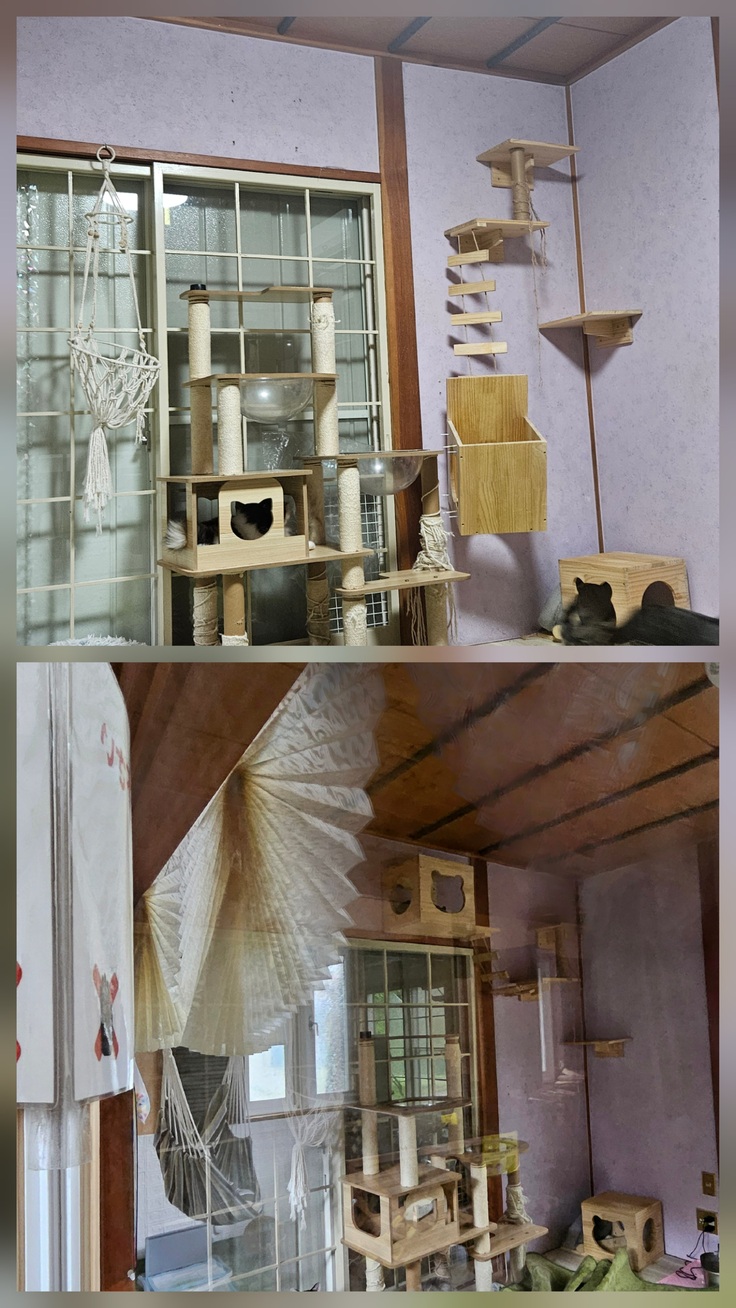 現在、猫の城の2つのキャットタワーはボロボロ…