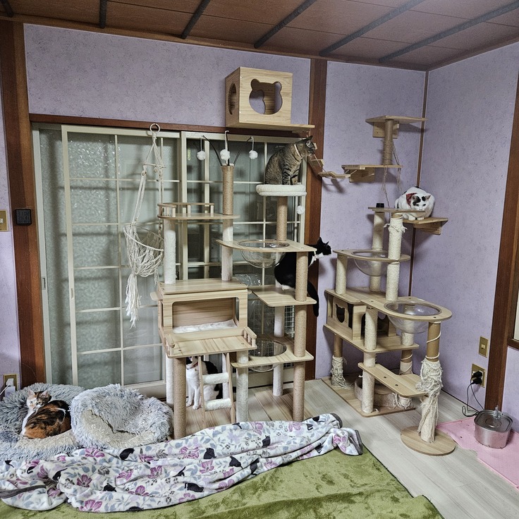 先日届きました✨🎁✨のキャットタワー組み立ててもらいました。
