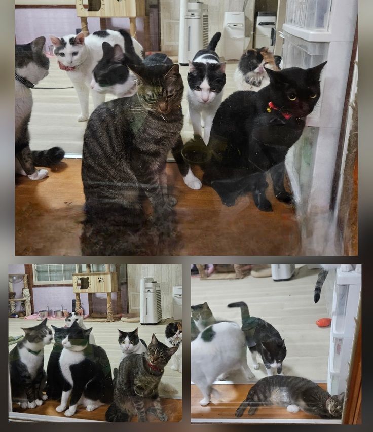 おはようニャンコ…おはぎちゃんまたも脱走しようとしております。