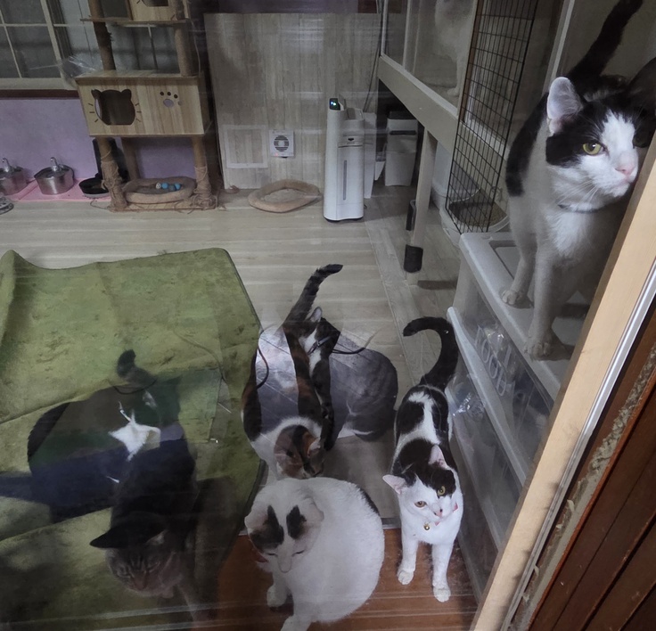 猫AIDSのシルクくんいつもと変わり無くご飯のおねだりみんなのトイレ掃除中に聞いたことの無い声が…