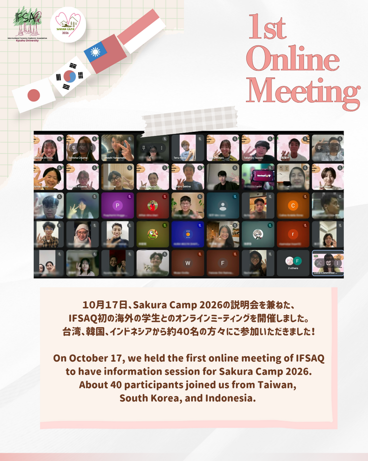 10月17日にSAKURA CAMPのオンライン説明会を行いました。韓国、台湾、インドネシアから約40名の学生に参加していただきました。