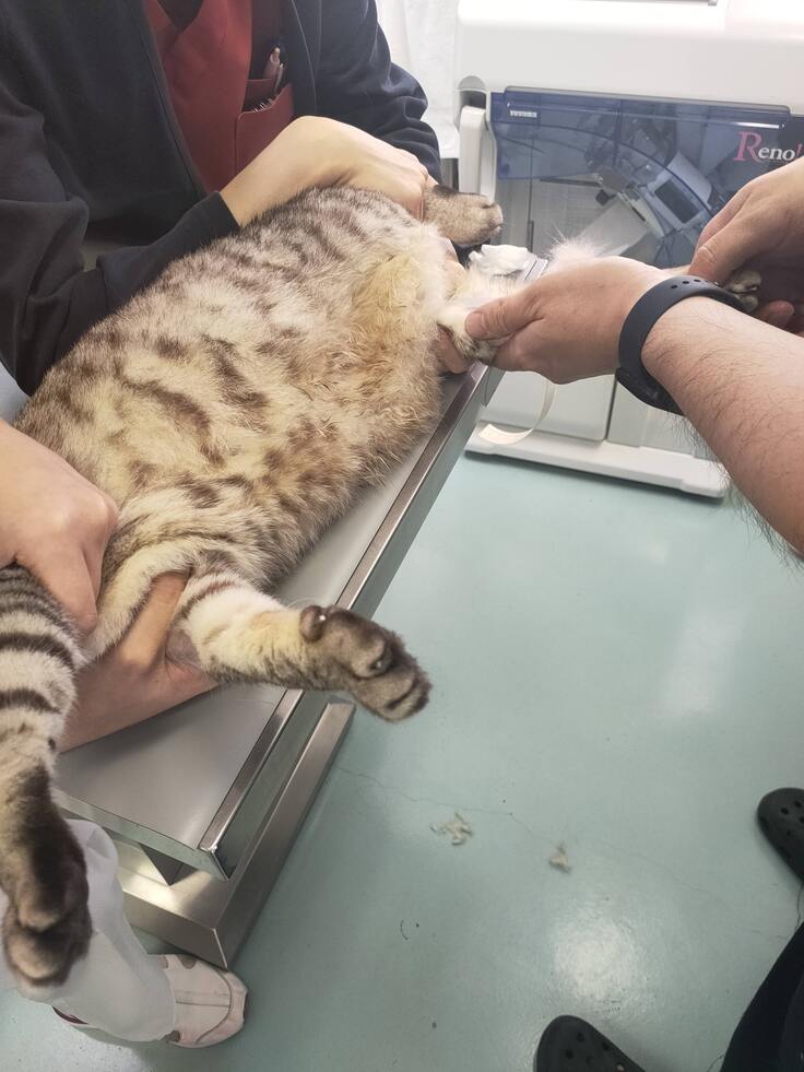 先生と看護師さんだけではルーチェが大暴れして手が付けられないので、入院前に血液検査、抗がん剤、点滴をしていただいてます。抗がん剤を毎回特殊なもの使っているのと入院枠しか残っていないのでこの方法を取らざるえません。