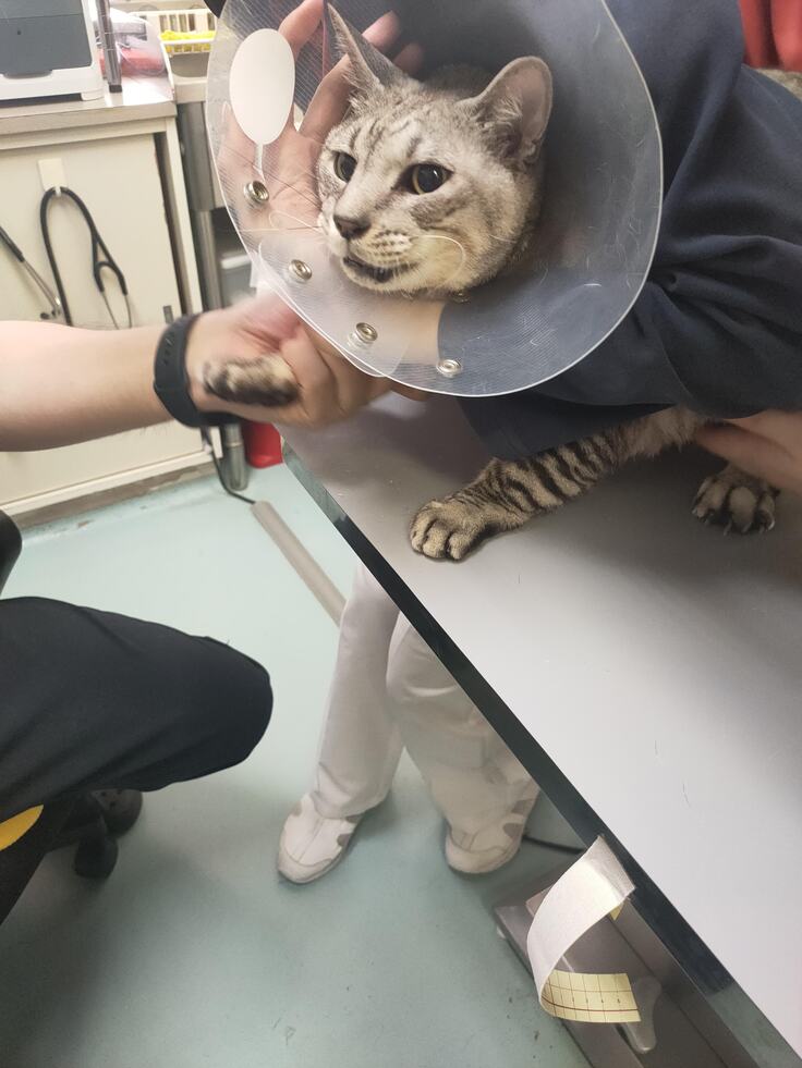 ルーチェはエリザベスカラーが大嫌いで毎回暴れるのですが、今回もかなり暴れて腕からの留置を断念、足から留置を取って抗がん剤入れていただきました。