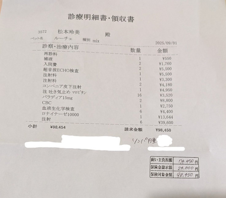 ↓今回の診療費です。増強剤を打ってるのでやっぱり高いです。