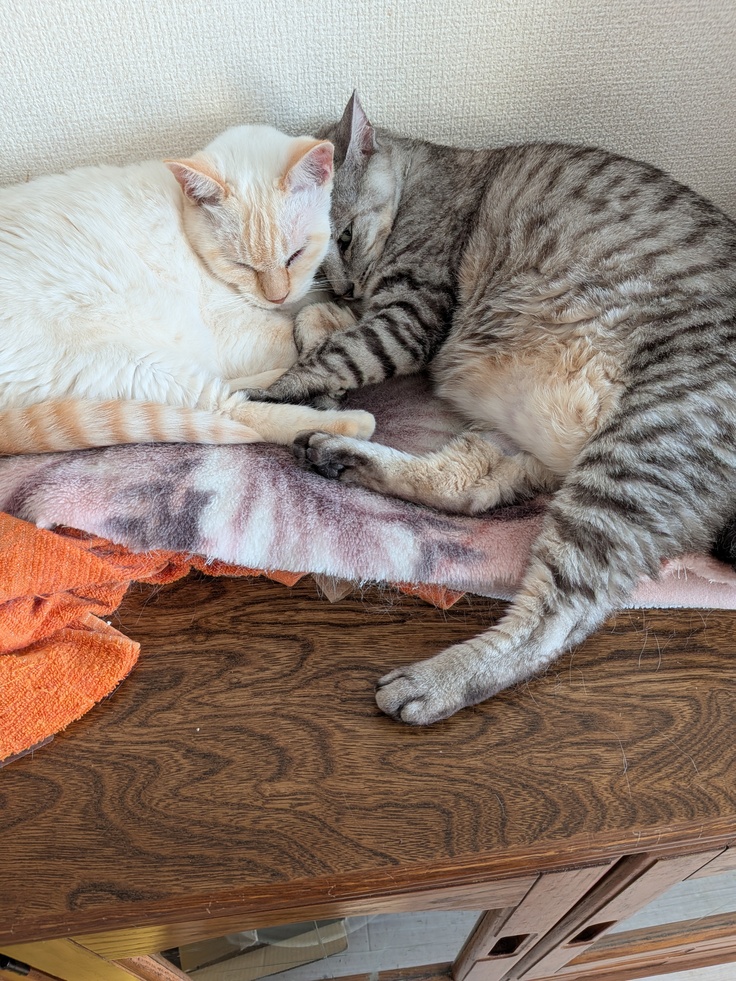 まったりしていました。いつも病気の子のチェックは欠かさないので、体を触って他に異常はないかとか、体は熱くないかとか気をつけていつも見ています。