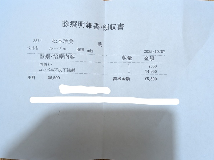 今日の治療費です。