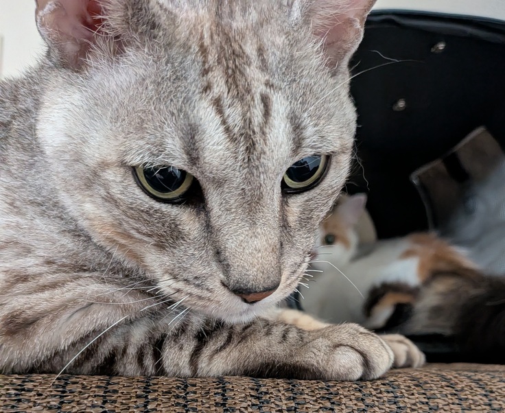 ご機嫌斜めなので足に噛みついてきます。ご飯は食べているので体調は悪くはないと思うのですが。