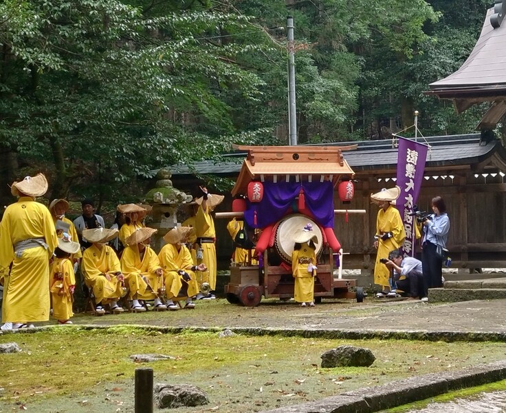 若狭彦神社本殿屋根修復後、初めての遠敷祭りで大太鼓の奉納が行われました。