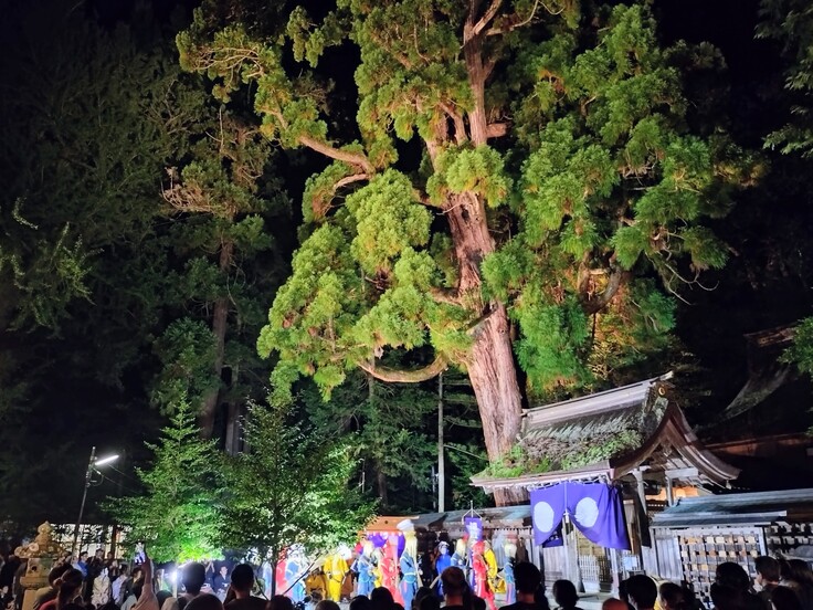 10月11日(土)12日(日)に執り行われた遠敷祭で、御神木「千年杉」のライトアップと大太鼓、神楽の奉納が行われました。