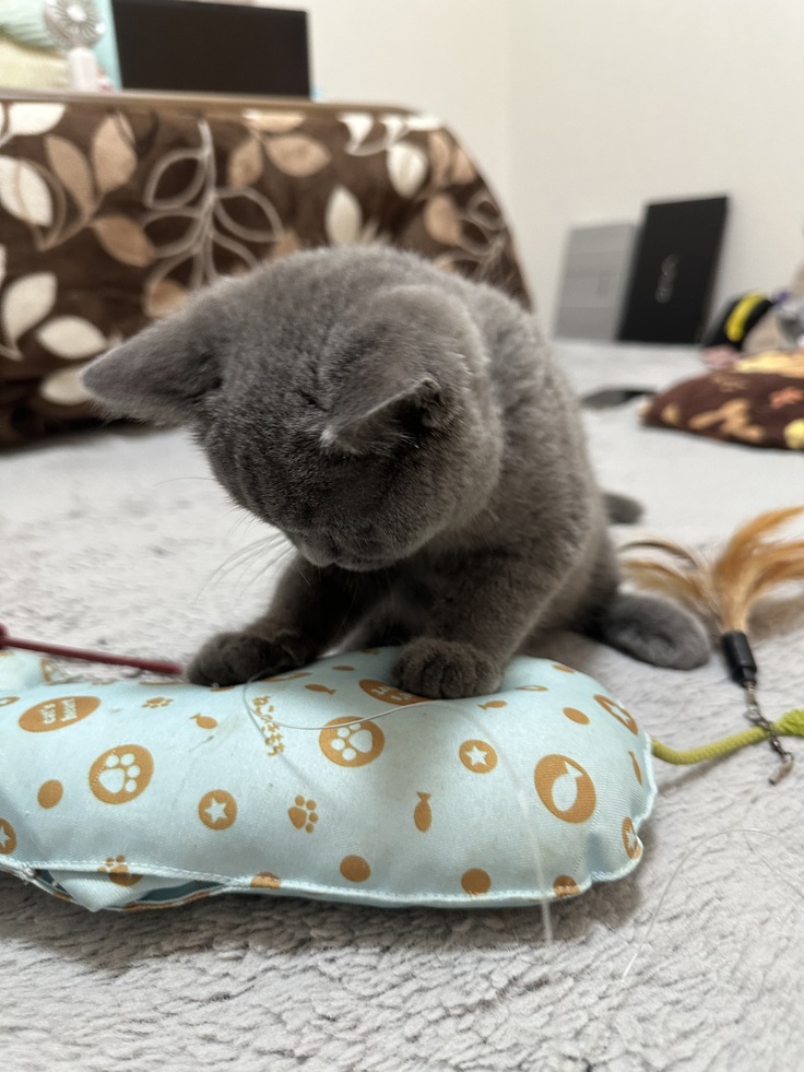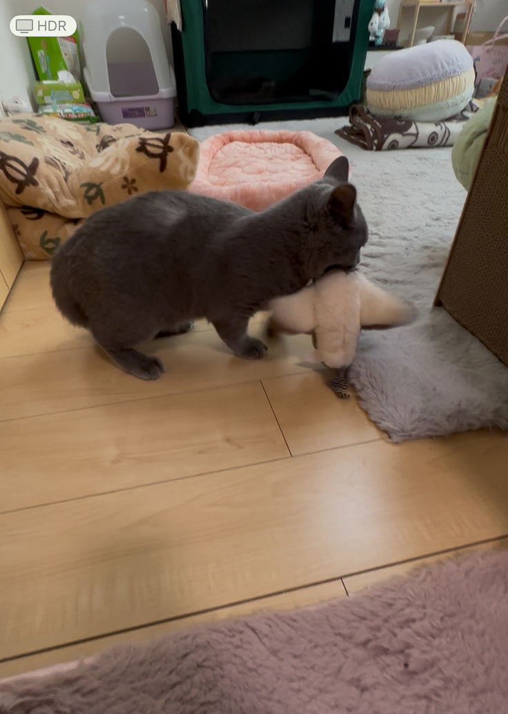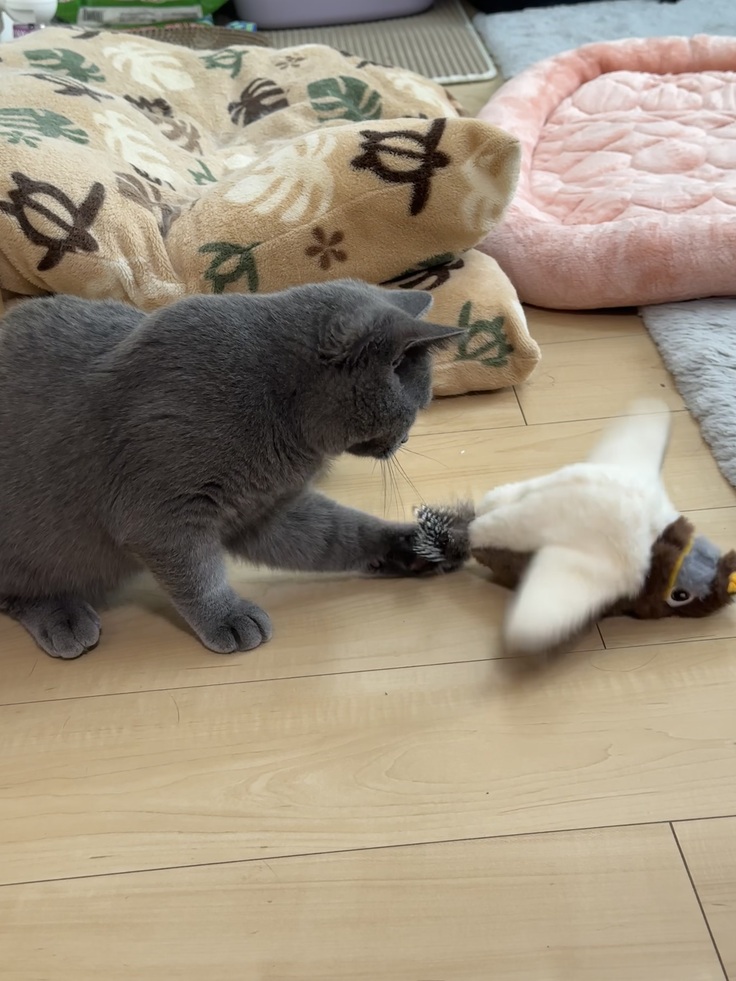 新しく動くぬいぐるみをあげたら早速ハントしてました😅
