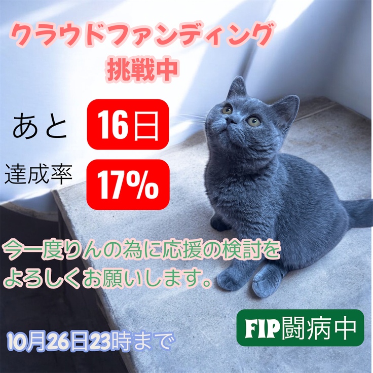 いただいた支援金は、りんのFIPの治療費用に充てさせていただきます。