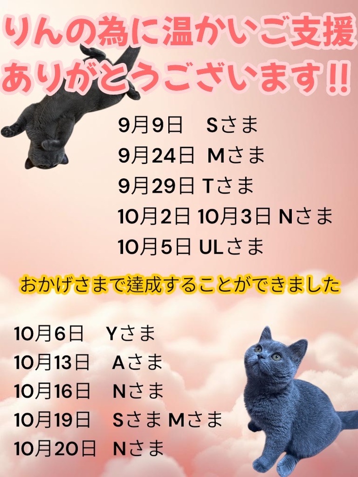 不慣れな投稿や達成率に伸び悩み何度も挫けそうになりましたが、りんのことを応援してくださる方がこんなにいるんだ!と飼い主自身も励まされていました。