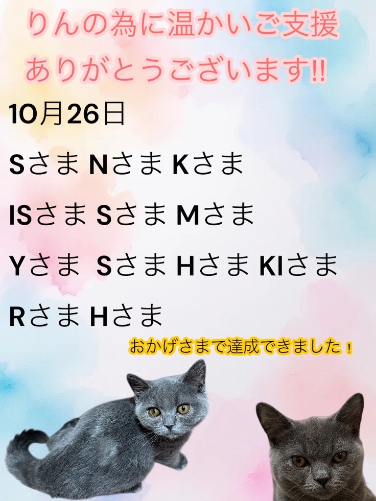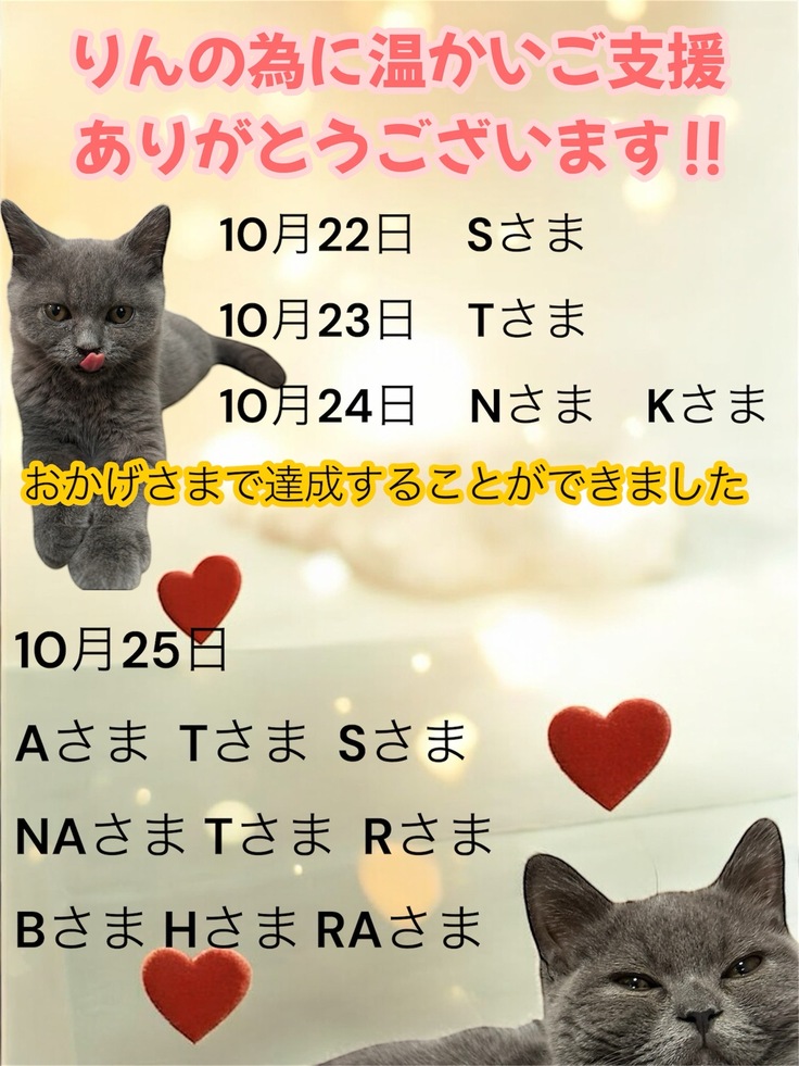 いただいた支援金は、りんのFIPの治療費用に充てさせていただきます。