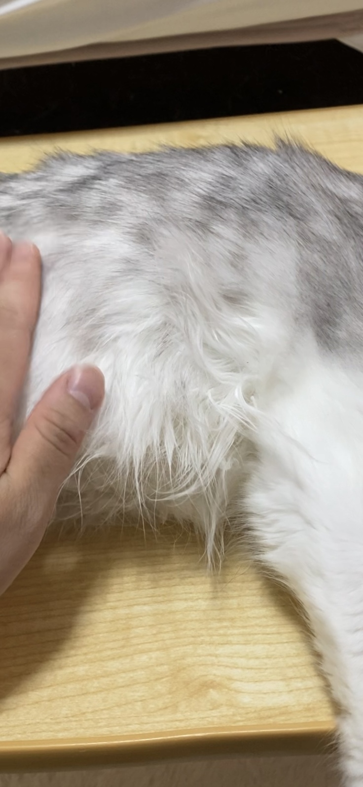 いつもお尻の周りは綺麗なのですが、べったりうんちが付いてしまい、お尻周りの毛をカットしました。