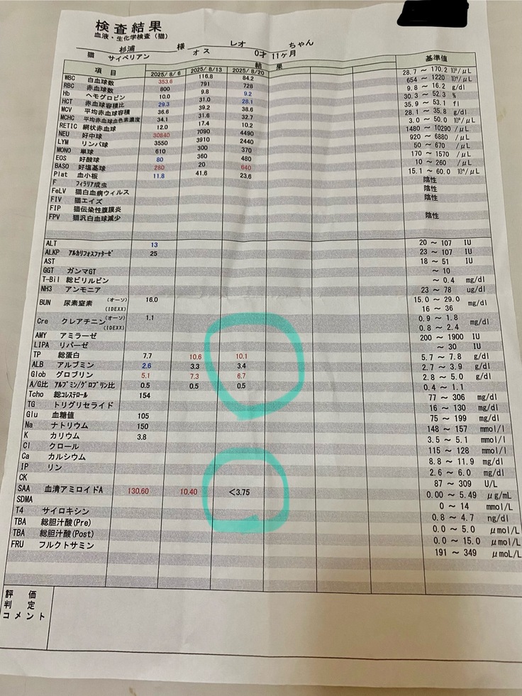 血清アミロイドAとは、炎症が起こっていると上がってくる数値だと説明して頂きました。