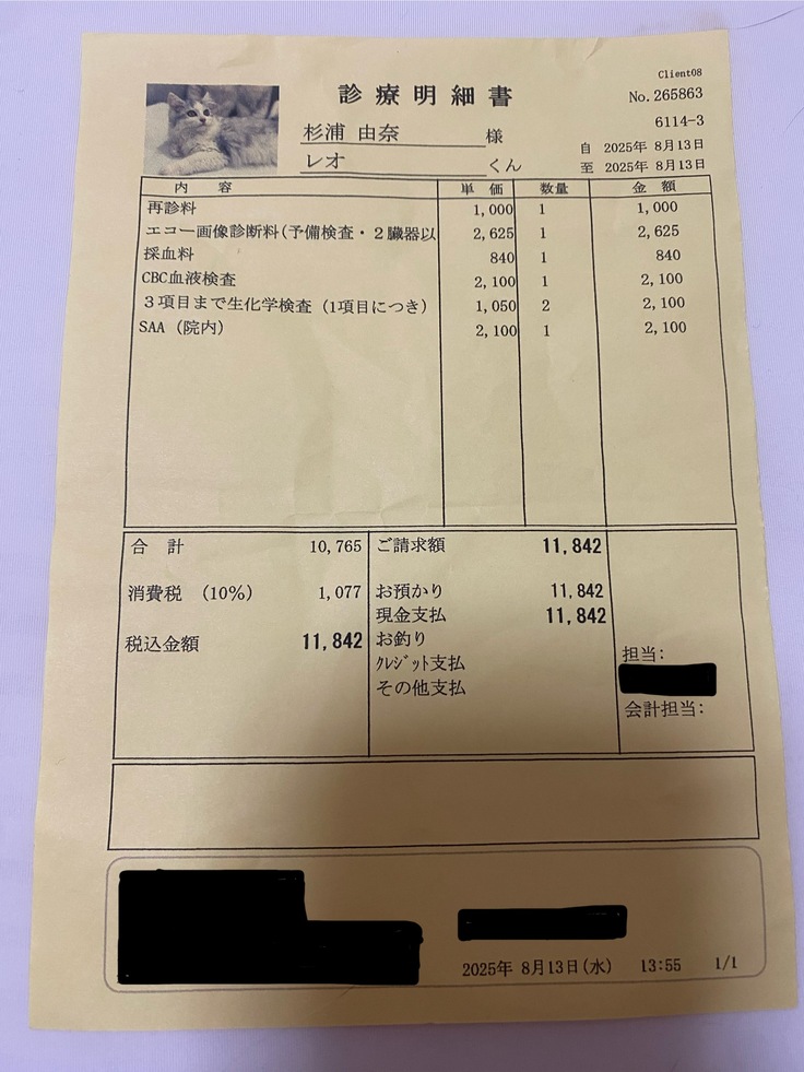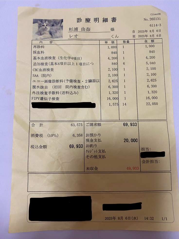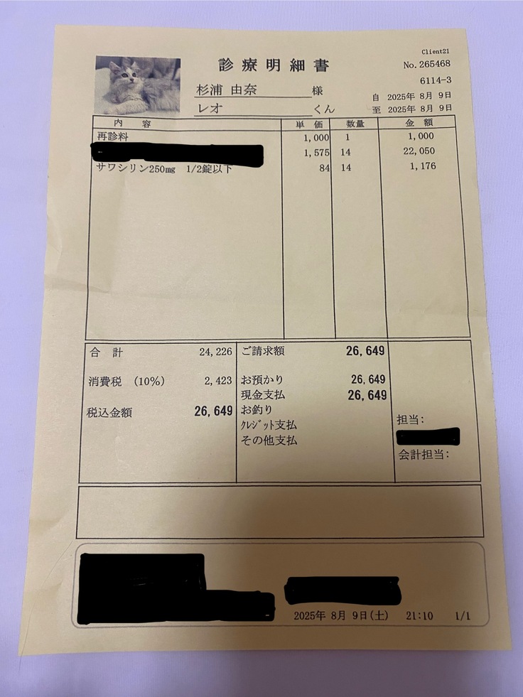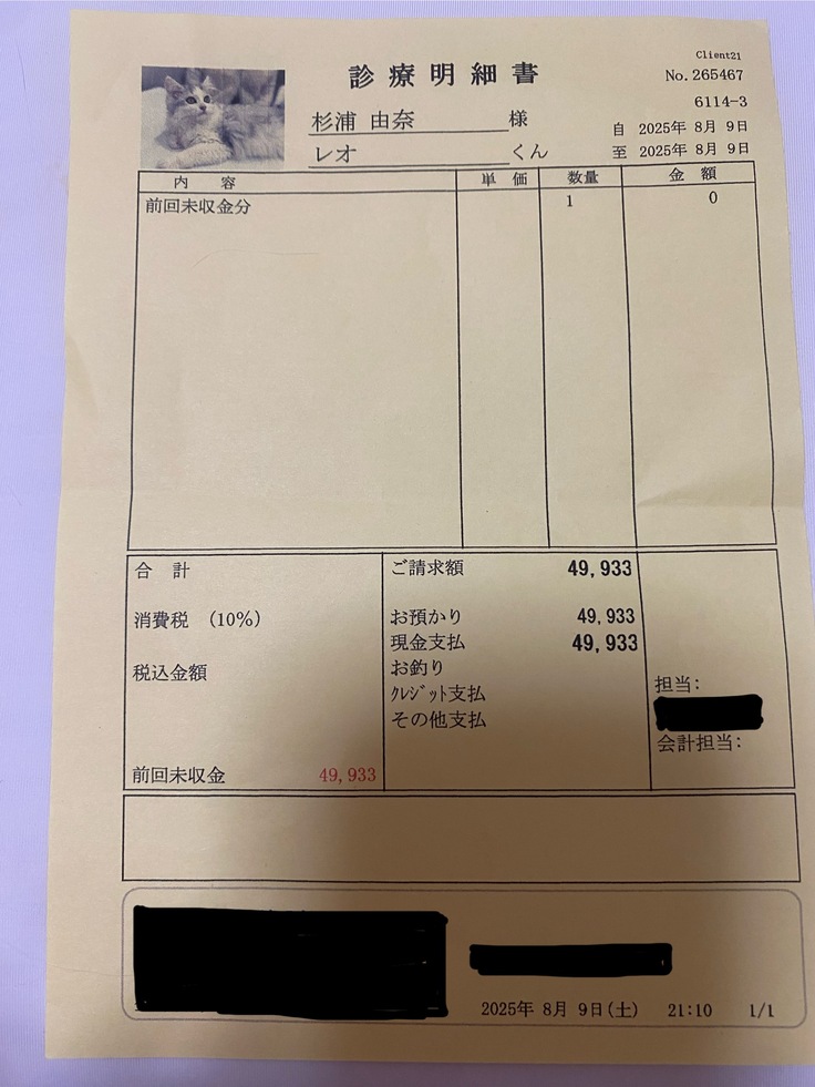 繰り返しになりますが、本来であればこのような事態に備えておくのが飼い主としての責任です。日頃から準備しておらず、またレオちゃんの体調にも気づくのが遅くなり、深く反省しております。