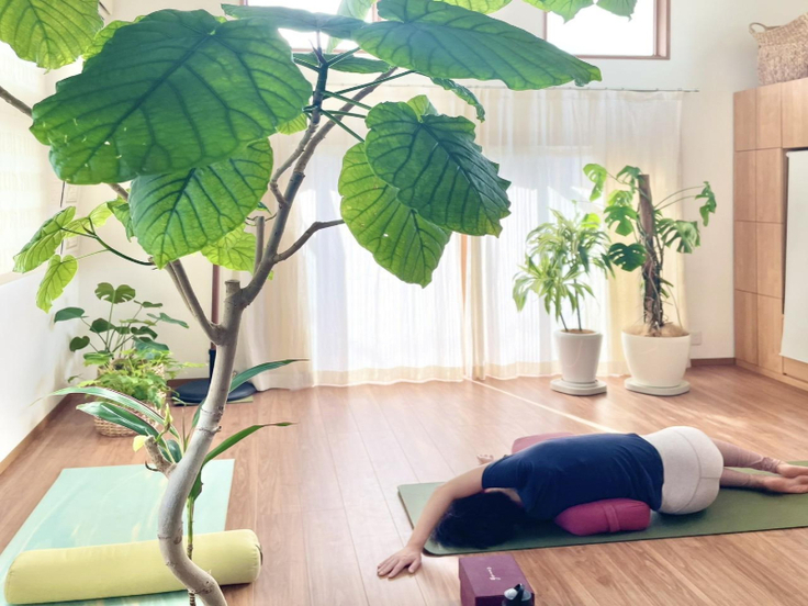 ヨガをしたことがない方でも大丈夫です。陰ヨガは深いストレッチのポーズが多いので、ぜひ一緒にリフレッシュしましょう。