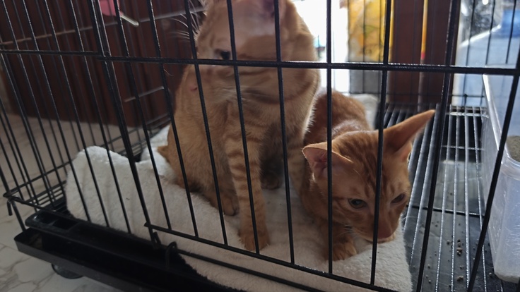 今日は朝イチで、テンテンとトントンを去勢手術のため保護施設へ連れて行って来ました。