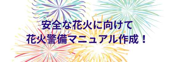 花火を打ち上げるにあたり、安心安全に楽しく花火を見ていただくために、花火警備マニュアルを作成しています。マップの作成や立ち入り禁止箇所の記載など…沢山の時間をPCと過ごし、少し大変ではありますが、皆さんと花火を見れることを活力に頑張っております!