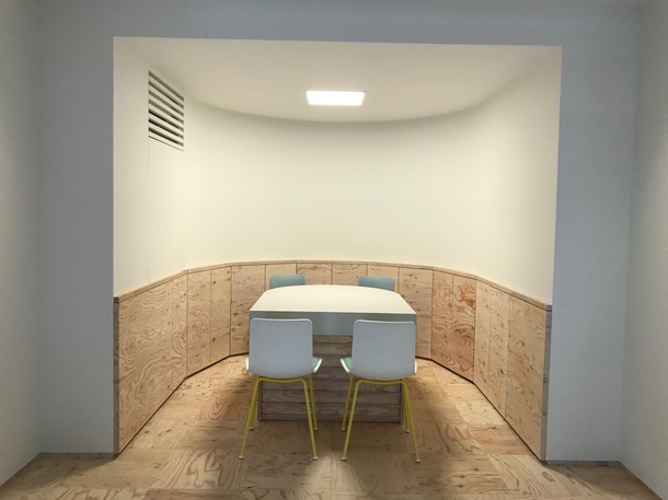 この度のギャラリーの施工は、neu furniture works(ニゥファニチャーワークス)さんという武蔵村山にある、本来特注家具の製作を本業とする業者にお願いしました。当初、こうした店舗全体の内装工事の実績が余り多くはないということで、諸々懸念しておりましたが、完成した内装を見た瞬間、ニゥさんにお願いして良かったと、それはもうほとんど直感的にそう確信しました。やはり細部の仕上がりが抜群に綺麗です。全てが家具クオリティー!大切な作品を収納する特徴的な中央のテーブルはもちろんのこと、塗装の仕上げ、さらには予算の都合で極限まで節約したバックヤードのシンプルながら機能的なミニキッチンに至るまで、本当に手抜きのない丁寧な仕事をして下さいました。これまで施工業者さんのことには余り触れて参りませんでしたが、皆さまのご期待を裏切らない素晴らしい仕上がりとなっております。是非ともギャラリーにお運び頂いて、実際にその目でお確かめ頂ければ幸いです。