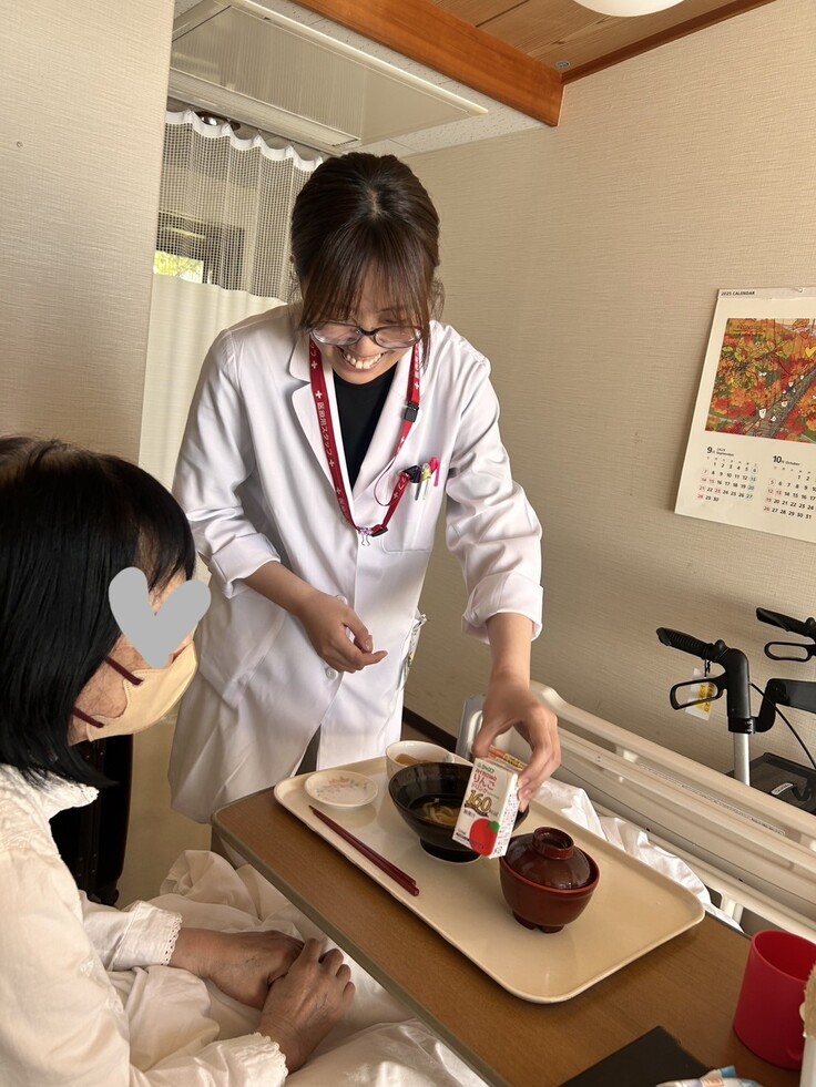 主な業務は、栄養管理・給食管理・栄養指導です。当診療所には、外来だけでなく、入院やショートステイ、通所サービスや在宅医療と様々なサービスがあるので、3つの業務がそれぞれ幅広く、ひとりでするのは大変だなと思うこともありますが、同時にやりがいも感じています💪