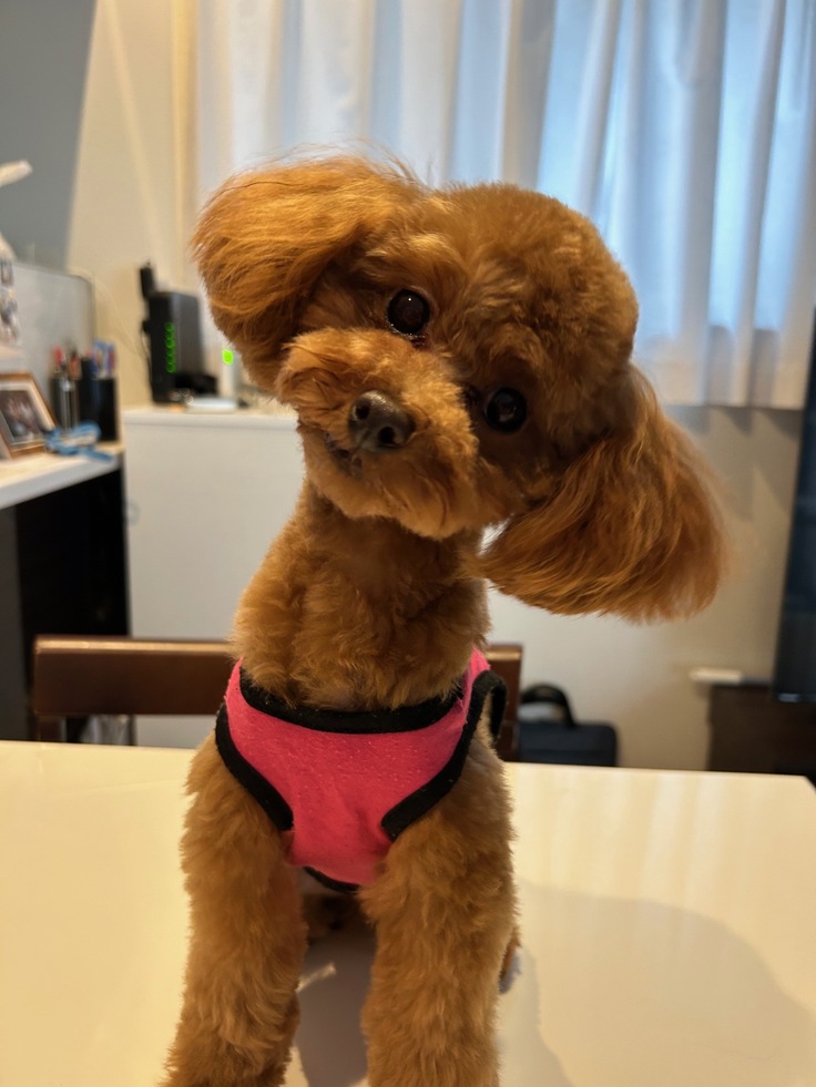 ゆむを迎えたきっかけは最初は先住犬、宙が病気で元気がなくなり、ゆむや北斗を迎えることににより宙が少しでも元気を出してくれることでしたが、今までに飼った犬種は主にチワワということもあり、私たち二人ともブリーダーさんの所で初めて生後2か月のトイプードルのゆむと対面した瞬間、正直、今になればゆむの今までの犬種とは異なる可愛らしさや仕草に魅了されたのだと思います。