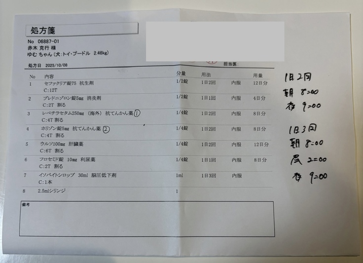 翌日、早速別府の病院から紹介を頂いた熊本県にある動物病院に電話で初診の予約を入れ、日にちと時間が決まりました。
