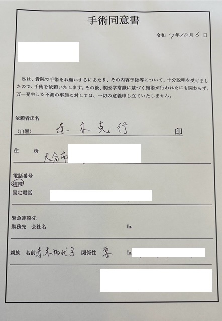 診察の最後に、これ以上症状が進行する前にと急遽手術日が決まり、2025年10月6日(月曜日)午前9時となりました!経過が良ければその週には退院とのこと。。。