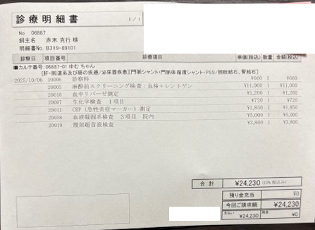 〈2025年8月8日〉一応、朝のトイレシーツを持参して主治医の先生に診ていただくと、「血尿っぽいですね、念のため血液検査と腹部の超音波検査をしましょう」と。