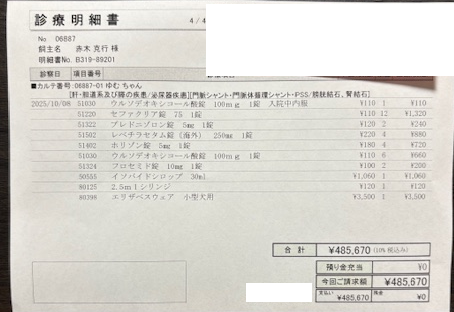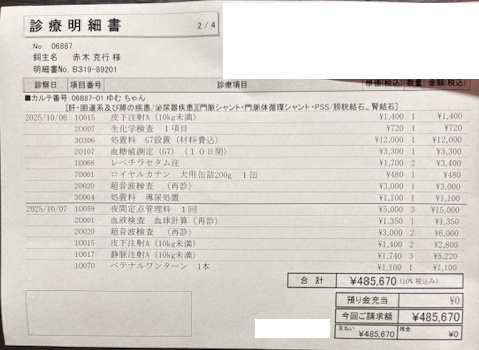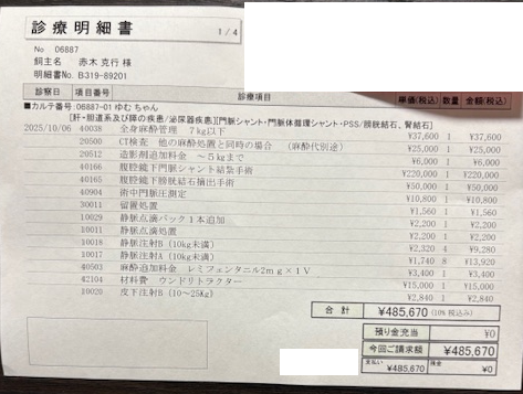 ●今回ご支援して頂いた資金は全額、ゆむの門脈体外循環シャント及び膀胱結石摘出のための過去の手術費用に充てさせて頂きます。