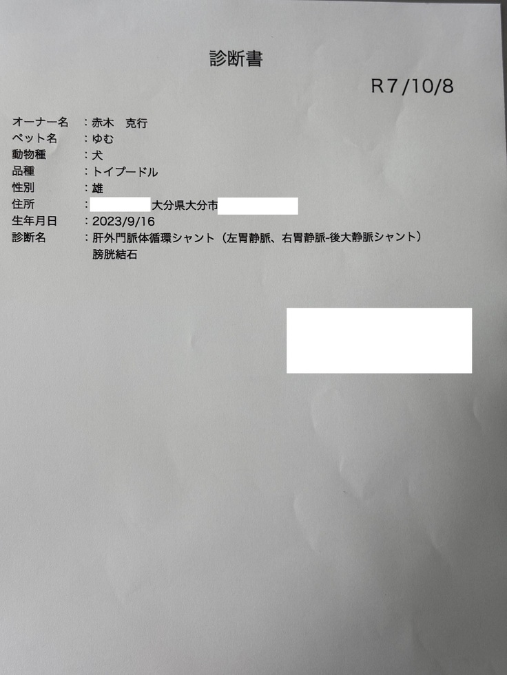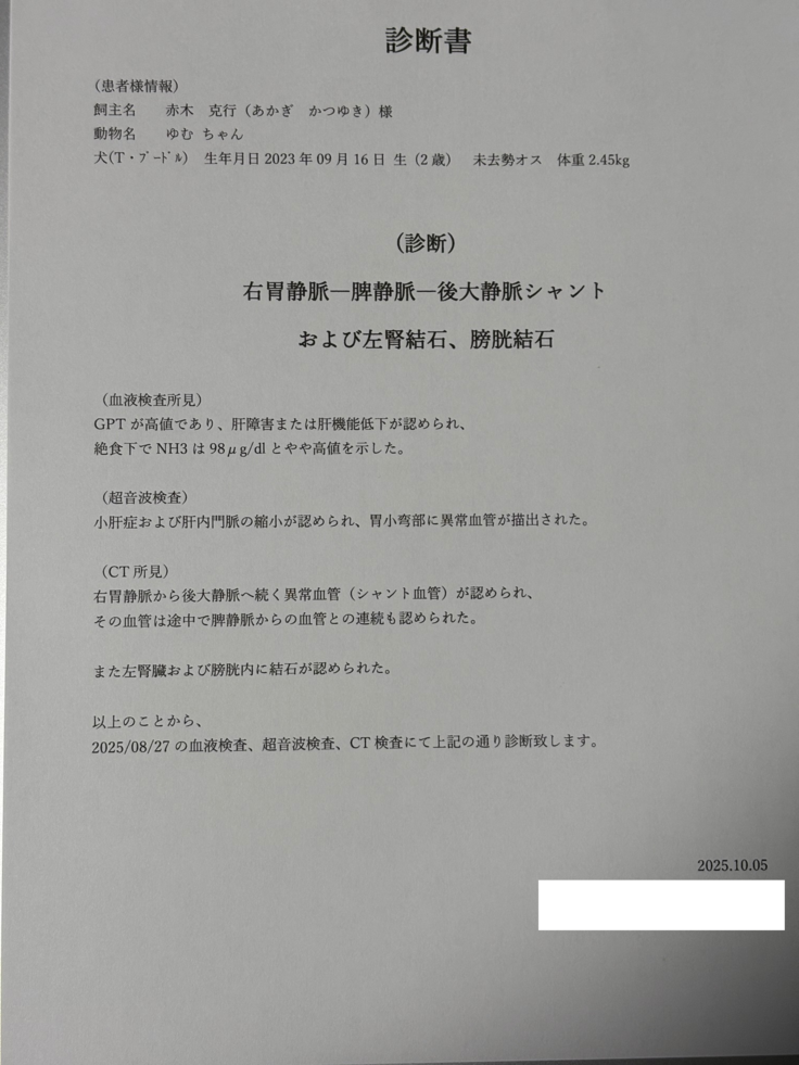 2025年6月と8月のほんの2回の血尿から発覚したゆむの小さな体に起きている命に係わる門脈体外循環シャント。。。