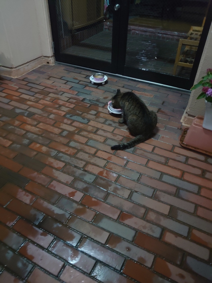 昨夜はどしゃ降りの中の餌やりに出ましたが