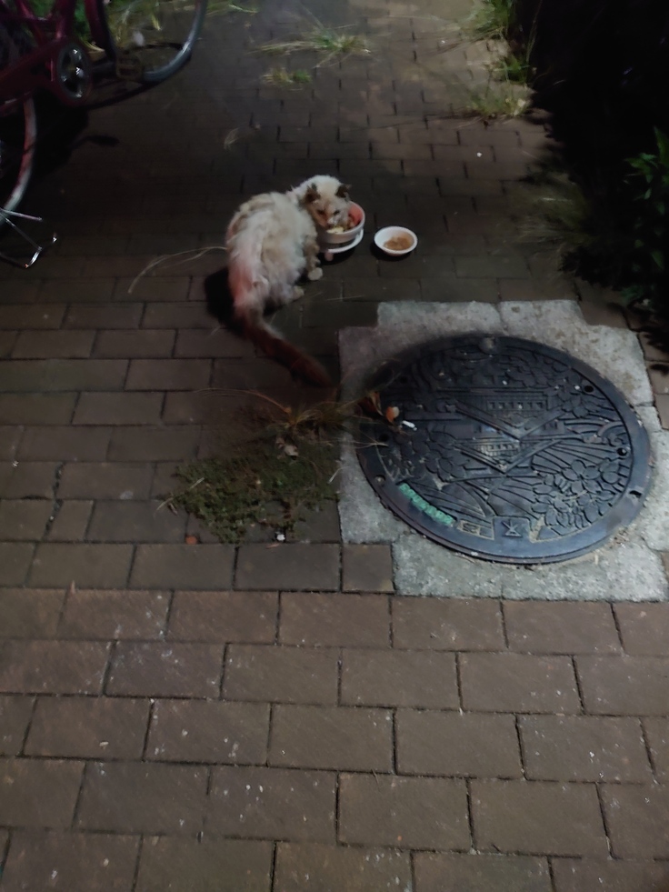 昨日の夜は治療が必要な仔の捕獲でしたが、警戒心の強い仔で最初全く近づかないし、なので踏み板の手前に餌皿置いたら