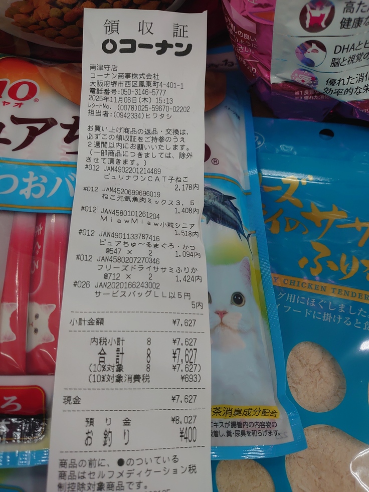 今日は昼からニャンコのご飯を買いに友人がついてきてくれました。