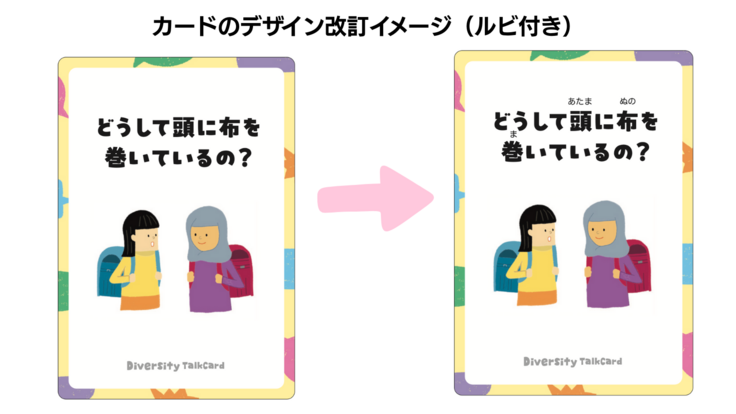 実際にカードを使用する中で、漢字に慣れていない子どもや外国ルーツの方でも安心して参加できるよう、ルビをふるなどの改良が必要であることも分かってきました。今回のご支援は、この改訂版の制作費に充て、より多様な人が安心して使える形へと進化させるために活用いたします。