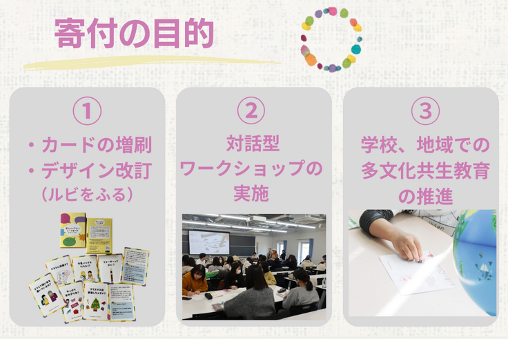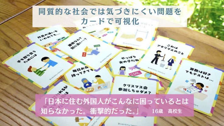横浜市内の私立中高、また大学にて、このカードを用いた対話型の多文化共生ワークショップを実施し、SNSでその様子を発信したところ全国から反響をいただき、カードの増刷を検討しました。