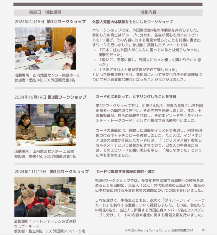 2025年7月、SCCで活動する外国にルーツを持つ子どもとその保護者、そして青葉区の学習塾「スターグローブ」に通う中高生とともに、対話で学ぶ多文化共生カード「ダイバーシティ・トークカード」を完成させました。